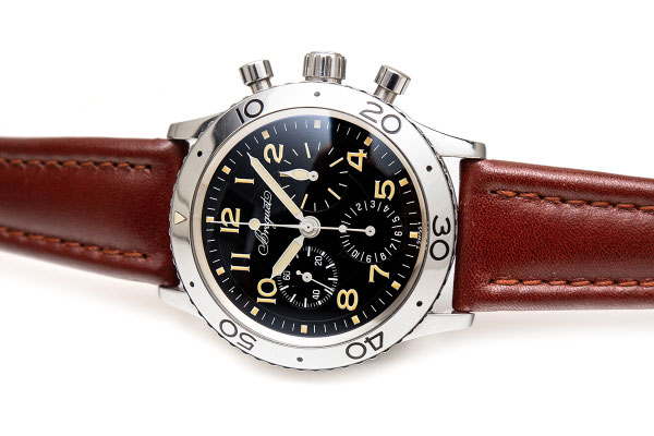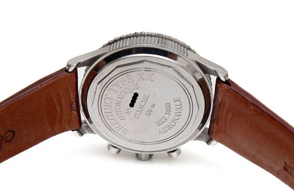 Remarques : La 3800 est un must have pour les collectionneur de montres, surtout dans cette version Aéronavale sans date et dotée d'une superbe patine de son tritium. Issue d'une longue lignée de montres militaire et civile, cette pièce dispose d'un chronographe de type Flyback ou Retour en Vol. Pièce en superbe état, vendue avec sa boite en forme de profile d'aile.