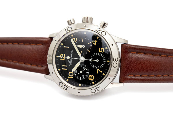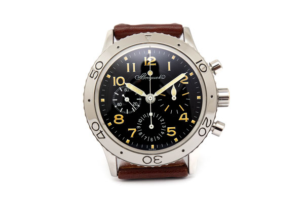 Remarques : Référence emblématique de la maison Breguet, la Type XX dans cette déclinaison Aéronavale est l'expression moderne des modèles ayant parfois équipé les pilotes de chasse de l'époque. Reconnaissable à son insert doré dans la couronne cette première génération bénéficie d'une patine absolument superbe de ses index. Pièce et c'est rare, vendue complète.