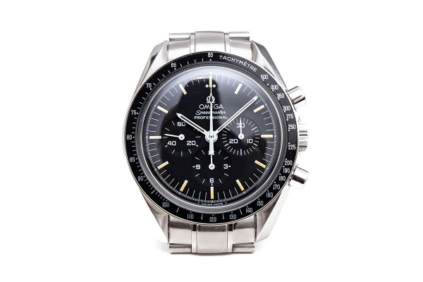Remarque : Plus célèbre chronographe (avec la Rolex Daytona), la Speedmaster s'est faite une place particulière dans le secteur horloger de part la longue histoire que la noue à l'aventure spatiale et aux missions Apollo. La version ici présentée dispose d'un très beau cadran dans le tritium a pris une belle patine. Montre vendue complète.
