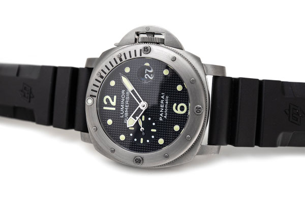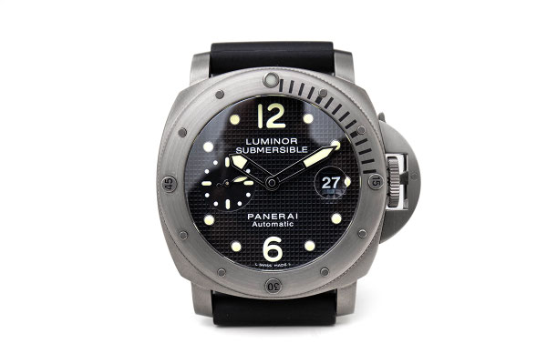 Remarque : Malheureusement plus au catalogue, la Submersible PAM00025 est restée emblématique. Boitier Luminor, lunette en hublot inspirée de l'Egyptienne, un très beau cadran gaufré, le tout sur un boitier en titane, confère à cette pièce un look qui traverse les années avec aisance. Notre exemplaire est en très bel état et vient accompagné de tous ces documents et de sa boite d'origine.