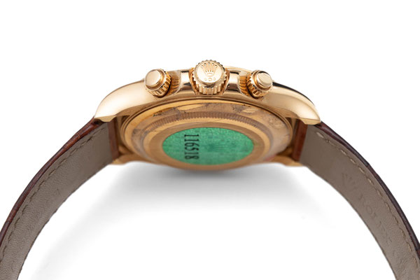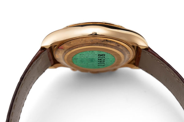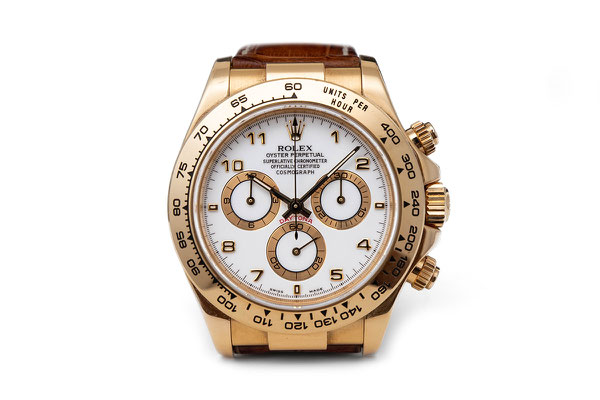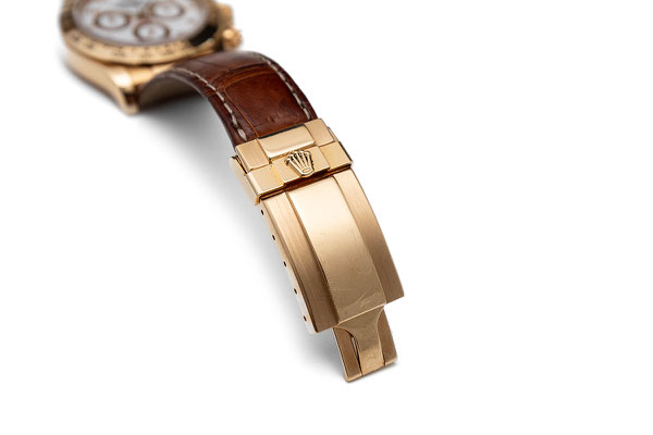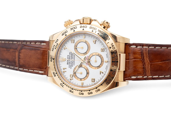 Remarque : Précieuse mais avec beaucoup de caractère, la version or sur cuir de la Daytona propose une dualité singulière avec notamment son boitier spécifique permettant de recevoir uniquement un bracelet souple. Le cadran notre exemplaire d'un blanc porcelaine est rehaussé par des index en chiffres arabes eux aussi réalisés en or jaune.