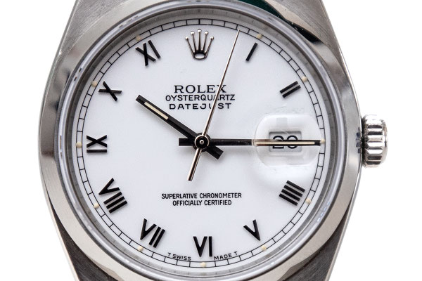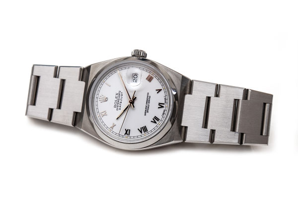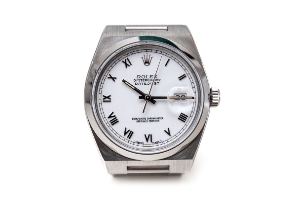Remarque : L'Oysterquartz est l'expression d'une époque. La crise du quartz frappe la production Suisse, Rolex et d'autres, développent leur propre mouvement quartz mais Rolex le fait selon ses standards. Résultat, un calibre dont la finition et dont les performances ne sont plus à démontrer. D'après les spécialistes, le 5035 est le plus beau mouvement quartz jamais fait. Notre exemplaire est proche du neuf et vient fullset.