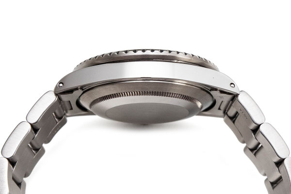 Remarque : La Rolex Submariner 16800 est une référence dite de transition. Elle se démarque de part son cadran mat pourvu d'index non cerclés dont la matière lumineuse au tritium propose une jolie patine (perle matching) qui ne demande qu'à se poursuivre au poignet de son futur propriétaire et d'un verre saphir.