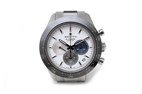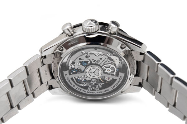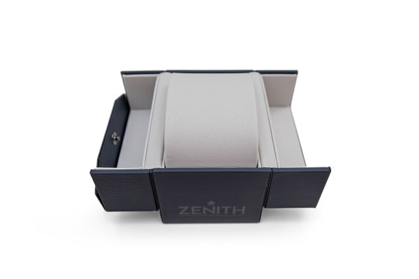 Remarque : Le calibre Zenith El Primero fait certainement parti des calibres chronographe automatiques les plus emblématiques de la galaxie horlogère. Conscient de sa capacité à mesurer des temps courts grâce à ses 36000 Alt/h, Zenith a concocté ici un chronographe sportif dont la grand aiguille de chronographe fait une révolution en 10 secondes permettant ainsi de mesurer au 1/10sec.