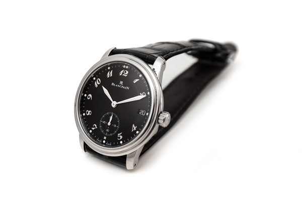 Remarques : Très belle et élégante Blancpain issue de la collection Villeret. Son boitier en acier de 36mm renferme un calibre à remontage automatique disposant d'une réserve de marche de 100 heures. Côté cadran, ce dernier est animé par une petite seconde située à 6h et dispose de chiffres Bréguet appliqués apportant un peu de sportivité à l'ensemble.