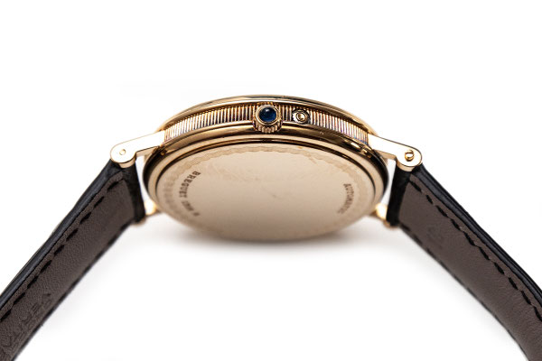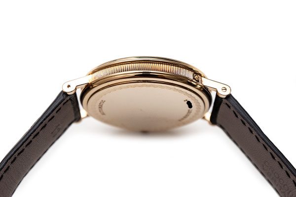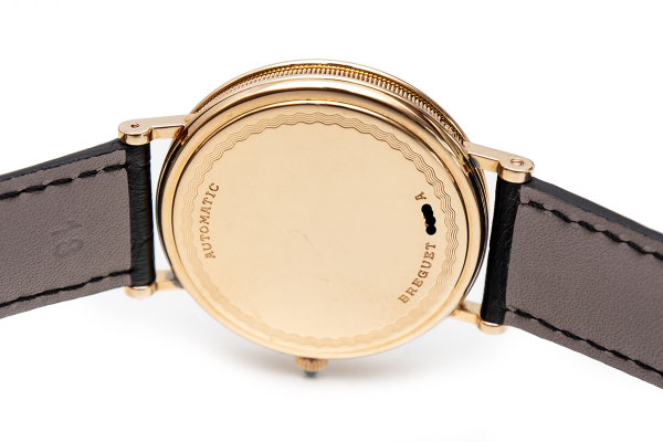 Remarques : Référence emblématique avec tous les codes de la maison Breguet : boitier cannelé en or jaune, cadran en argent guilloché à la main et disposition bien particulière des différentes complications en clin d'oeil à la réf. N°5 vendue au Compte Journiac Saint Méard le 14 mars 1794. Montre animée par le calibre 502.