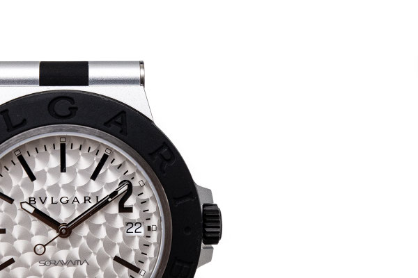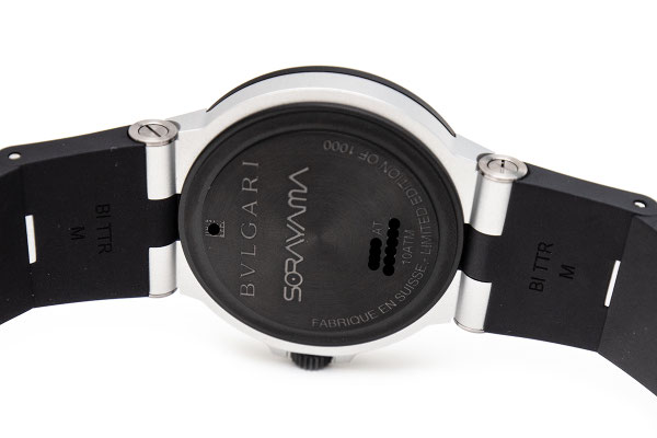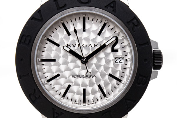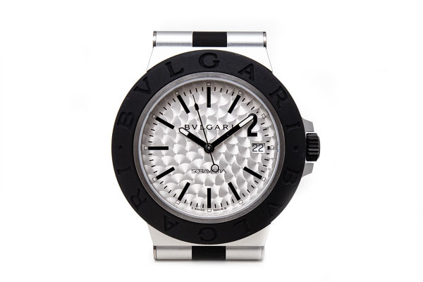 Remarques : Repoussant les limites des tendances et des époques, la Bulgari Aluminium redéfinit la notion de montre de sport. Pour cette édition spéciale limitée à 1000 pièces, Bulgari s'est associée à l'artiste japonais Hajime Sorayama qui réinterpréte de manière inédite le cadran de la montre avec une finition spécifique avec un chiffre 2 appliqué (chiffre porte-bonheur de l'artiste).