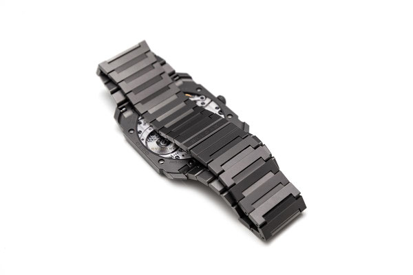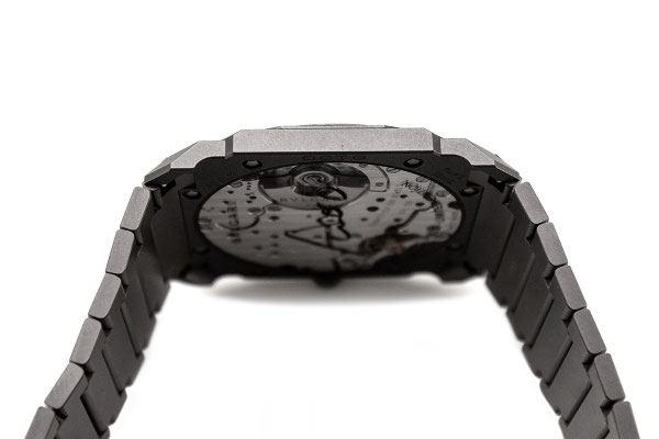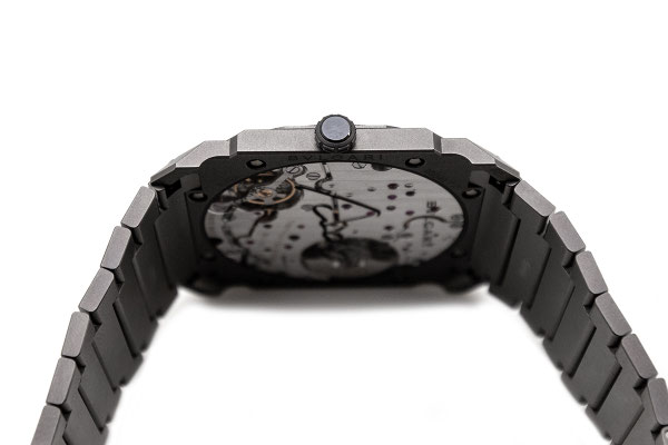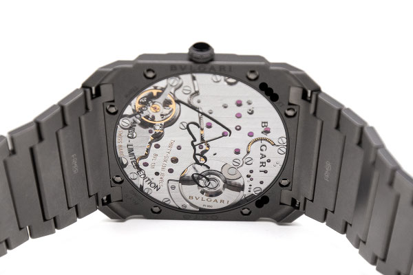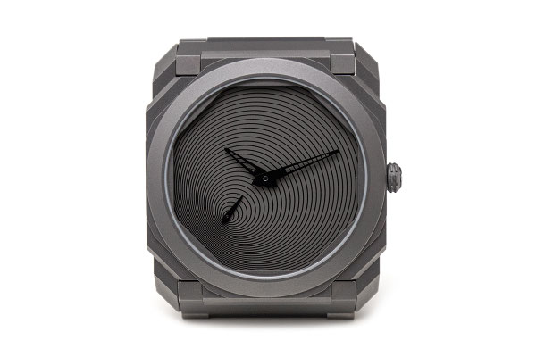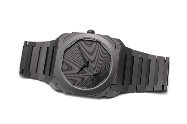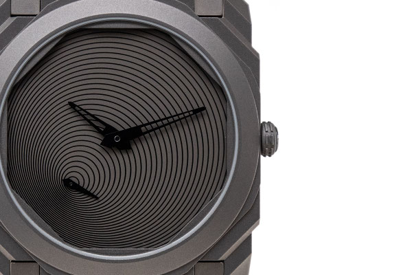 Remarques : Tadao Andō est un architecte japonais reconnu mondialement. Il travaille en particulier le béton. Il a apporté sa touche sur cette Bulgari en dessinant sur le cadran une multitude de cercles partant de la petite seconde, créant un effet hypnotique et venant contrebalancer les angles et arrêtes vives du boitier.