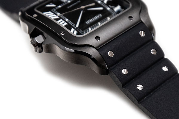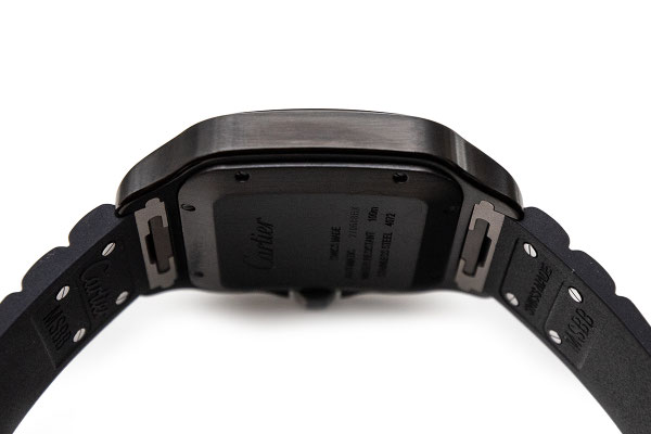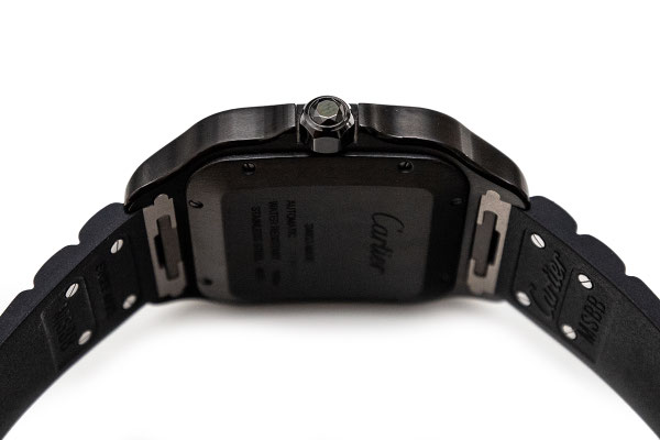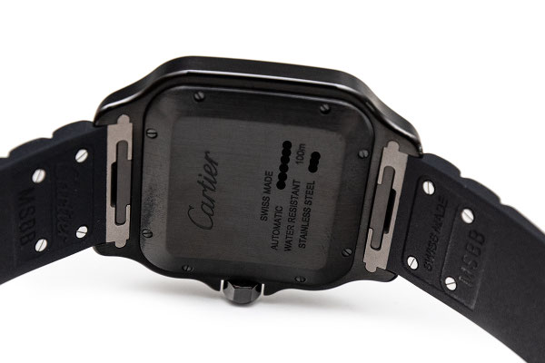 Remarques : Interprétation contemporaine de la mythique montre Santos de la maison Cartier. Ici, son acier reçoit un traitement de surface DLC noir procurant une sportivité élégante et une grande versatilité. Vendue avec 2 bracelets, cette Santos WSSA0039 bénéficie d'un système de changement rapide du bracelet, vous permettant ainsi, sans outil, de passer du cuir au caoutchouc. Montre jamais portée, vendue complète.
