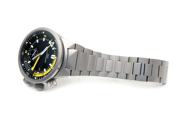 Remarque : Lancée en 1999, la Deep One a été la première montre équipée d'un profondimètre mécanique mesurant jusqu'à 45m de profondeur. Une aiguille jaune indique la plus grande profondeur atteinte.