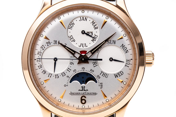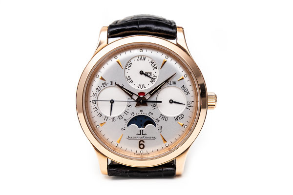 Remarque : La collection Master de Jaeger-LeCoultre comprend une grande variété de montres compliquées. Cette Master Perpetual est dotée d'un boîtier en or rose et d'un calendrier perpétuel, de phases de lune et d'un indicateur numérique de l'année, ce qui la rend très complexe mais adaptée aux environnements décontractés ou formels. Le garde-temps actuel a subi le contrôle des 1000 heures de Jaeger-LeCoultre.