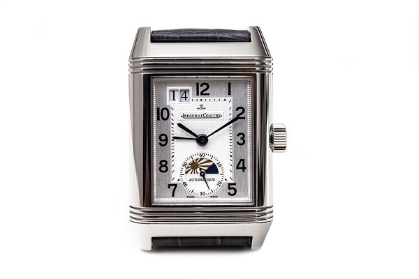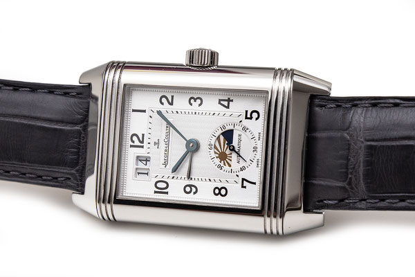 Remarque : La Reverso s'est déclinée dans de nombreuses versions et la Grande Maison a su développer des complications dans cette référence iconique. Ici, un calibre automatique anime cette pièce pourvue d'une grande date, d'une aiguille GMT associée à un indicateur Jour / Nuit. Parfait état cosmétique et de fonctionnement.