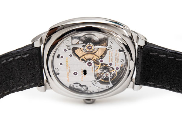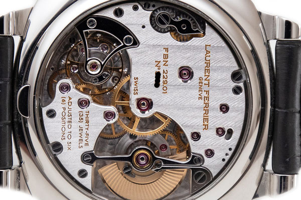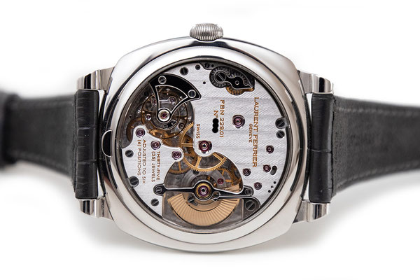 Remarque : Inspirée des pièces des années 30, l'horloger indépendant Laurent Ferrier (également ex pilote aux 24h du Mans) propose ici une référence à la fois élégante et sportive (acier) mais avec un contenu de très haut niveau grâce au calibre maison à micro-rotor. Finitions à l'avenant avec anglages, polis noirs, masselottes de balancier...Cadran exclusif, pièce unique.