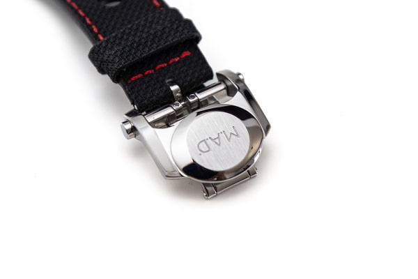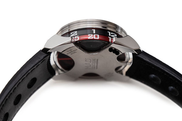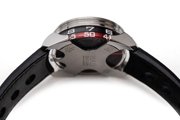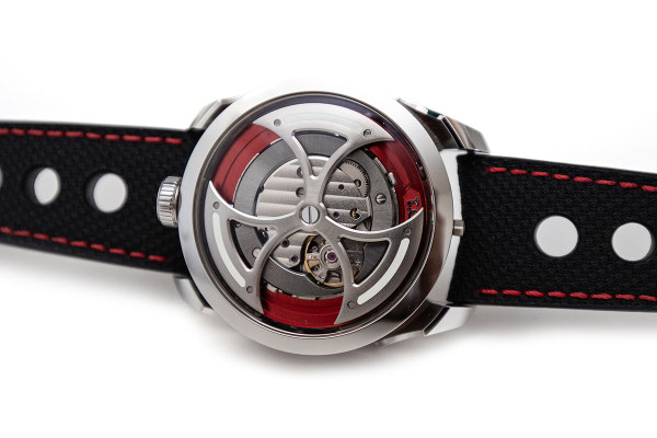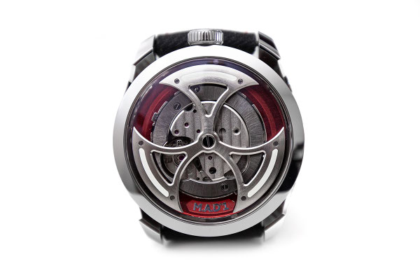 Remarque : La MAD 1 originale sortie en 2021 était reconnaissable grâce à ses détails bleus, elle était proposée exclusivement aux fournisseurs de MB&F, les Friends, et aux membres de The Tribe, le club des propriétaires de la marque. Cependant, les commentaires sur la MAD 1 furent tellement positifs qu’une nouvelle version a été promise pour 2022, disponible cette fois pour un public plus large: la MAD 1 RED.