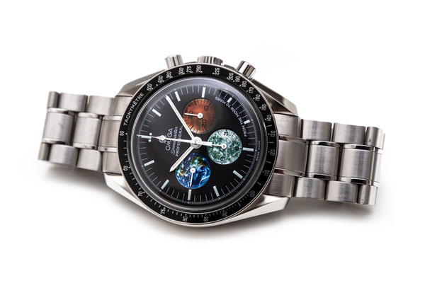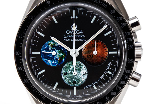 Remarque : Cette Speedmaster « From Moon to Mars » est pourvue d'un cadran noir avec verre hésalite, ponctué d'un compteur de petite seconde, d'un compteur des 30 minutes et d'un compteur des 12 heures. Les trois compteurs symbolisent la Terre, Mars et la Lune. La lunette noire, munie d'une échelle tachymétrique, est montée sur un boîtier de 42 mm en acier accompagné d'un bracelet assorti. Ce garde-temps est animé par le calibre mécanique OMEGA 1861.