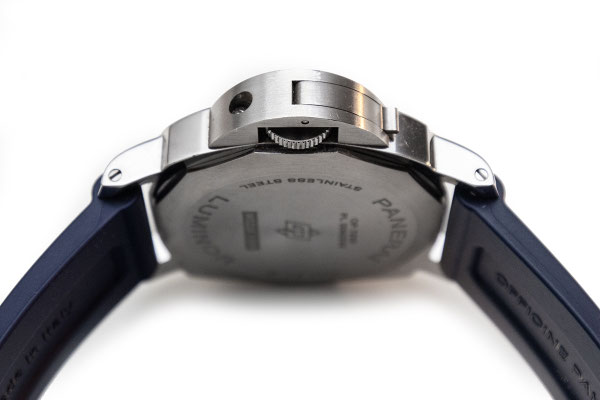 Remarque : Très belle Panerai Luminor avec son boitier Bettarini et le fameux pont de protection de couronne. Le cadran soleil bleu propose de superbe reflets et met en valeur le logo fléché à 6h. Calibre P.6000 à remontage manuel disposant de 3 jours de réserve de marche. Montre complète, et garantie jusqu'au 28/12/2026.