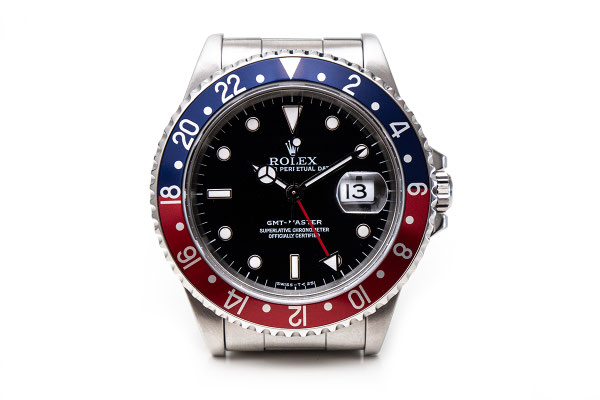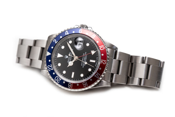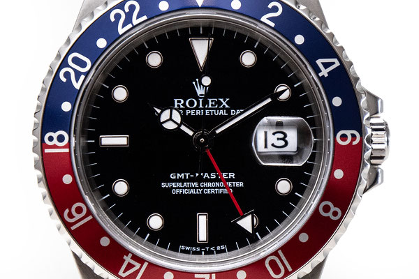 Remarque : La 16700 est sortie en 1988 et était équipée du calibre Rolex 3175. L'aiguille GMT rouge permet au porteur de suivre deux fuseaux horaires. La GMT Master 16700 remplaçait la GMT Master 16750 et se voulait une option moins chère que la 16710, sortie à la même époque. La Rolex GMT Master 16700 n'était disponible qu'avec un insert de lunette rouge/bleu Pepsi ou noir, il n'y a jamais eu de version Coke. Sa production fut arrêtée en 1999.