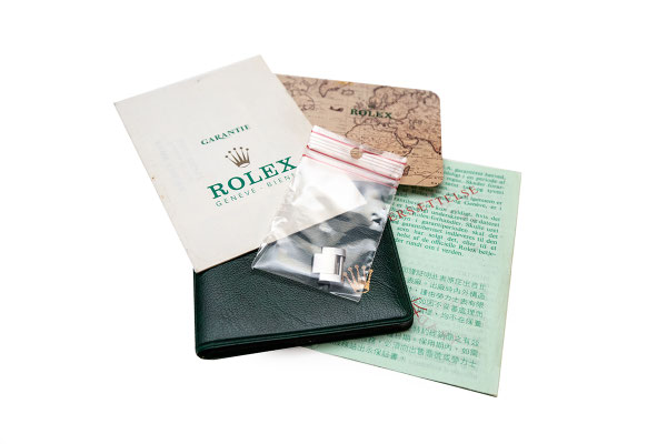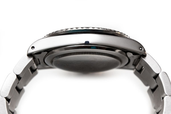 Remarque : Directement issue de la lignée du modèle original (sans date donc), cette 5513 dite de transition se distingue de par son cadran traité au tritium mais dont les index sont cerclés et non plus peints, son verre en plexiglasse bombé (le saphir arrivera ensuite). L'exemplaire présenté est vendu avec sa boite et ses papiers d'origines.
