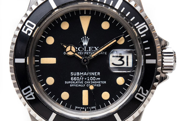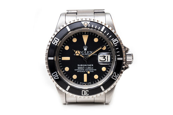 Remarque : Très bel exemplaire pour cette Submariner Date réf. 1680 dont la patine uniforme propose une couleur coquille d'oeuf du plus bel effet. Cornes percées, plexi cheminée, date sur fond argent sont autant d'éléments participant au charme de ces pièces. Montre révisée par Rolex en octobre 2018.