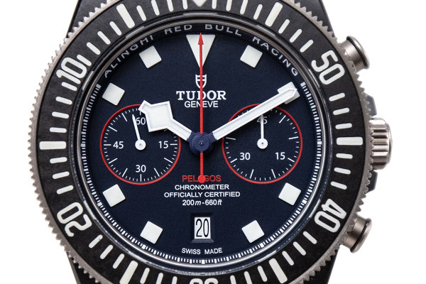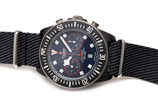 Remarque : Fruit de son partenariat avec l'équipage de voile Alinghi / Red Bull Racing, cette Pelagos dispose d'un inédit boitier en carbone, d'une lunette en titane et d'un bracelet t'en tissus dont l'attache se fait via une bande vélcro. Moderne et technique, le chronographe est animé par un calibre maison certifié chronomètre, le MT5813.