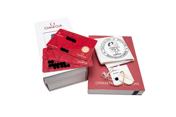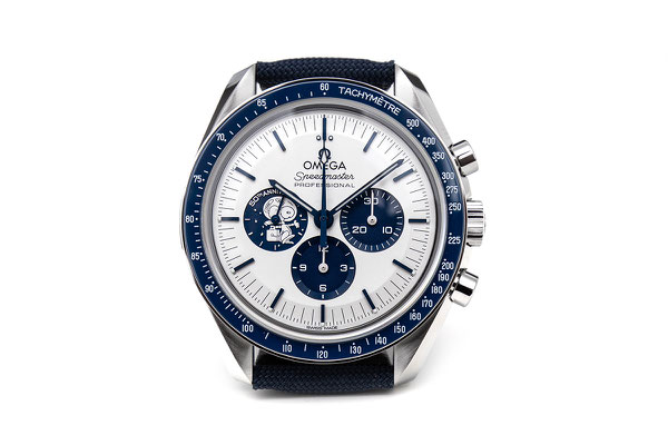 Remarque : Très belle Speedmaster célébrant le 50éme anniversaire du Snoopy Award. Cadran en argent, détails bleus, sous compteur reprenant le célébre chien, le tout dans un niveau de finition très élevé. De l'autre côté, Omega a poussé le détail, la terre tourne sur elle même alors que Snoopy passer régulièrement sur sa fusée au déclenchement du chrono. Montre jamais portée.