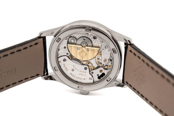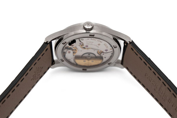 Remarque : La lignée des Calatrava dans la gamme Patek Philippe est emprunte de clanisme indémodable, de formes douce et de cadrans épurés bien souvent uniquement dédié à la lecture de l'heure. Sur cette 5026G, c'est le fameux calibre à micro-rotor 240 qui anime cette pièce, ce qui permet d'avoir cette petite seconde décentrée.