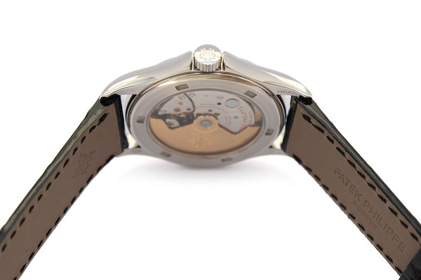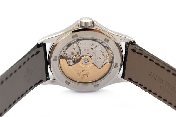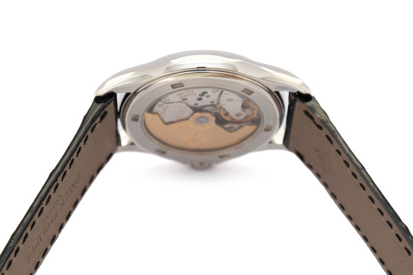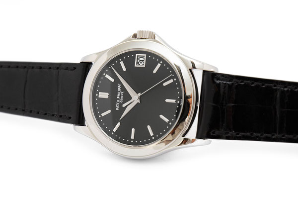 Remarque : Rare Patek Philippe Calatrava en platine et donc dotée du brillant serti à l'entre-cornes à 6h. Cette pièce peu produite se distingue de part son aspect classique et légèrement sportif dans un diamètre contenu de 37mm. Fait intéressant, la couronne est vissée. Le calibre automatique animant cette 5107P est le 315SC (pour Seconde Centrale).