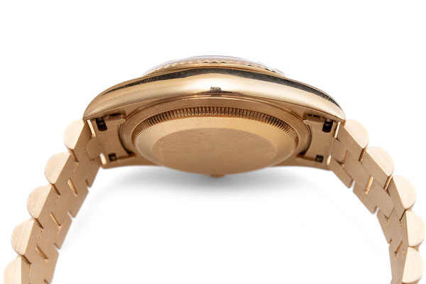 Remarque : Il aura fallut quelques décennies pour que ce type de Rolex et surtout de cadran trouvent leurs lettres de noblesse. Aujourd'hui, les 36mm de cette pièce conjugués au bracelet président en font un modèle d'élégance parfait très recherché. Sport chic, elle se jouera aussi bien de votre costume que de votre polo. A voir absolument, superbe pièce.